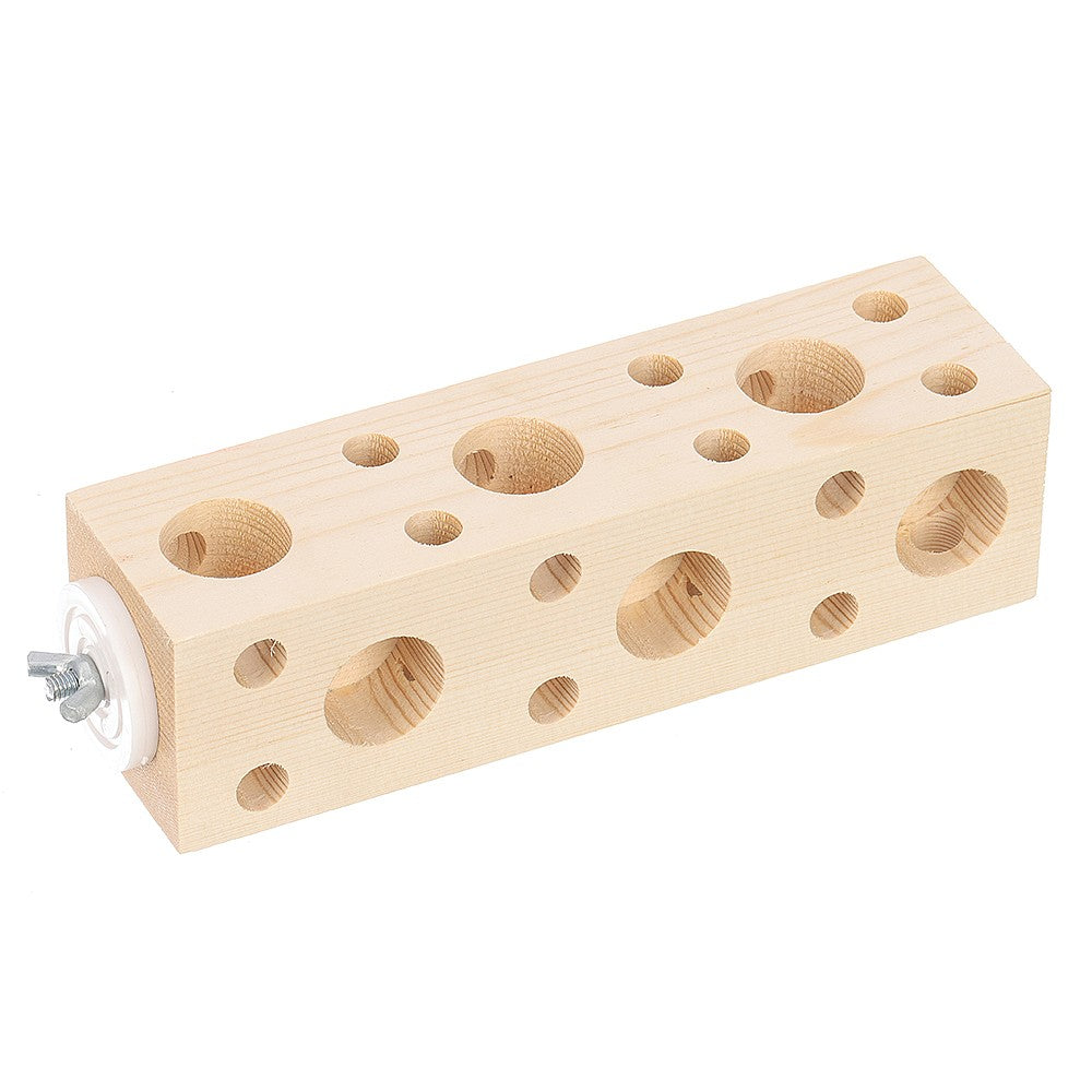 The Large Holey Forager Chewable Foraging Parrot Toy is a durable wooden cube designed to stimulate your bird's natural foraging instincts. Crafted from soft, chewable wood, this toy features multiple holes that can be filled with your parrot's favorite treats or shredded paper, encouraging exploration and problem-solving.